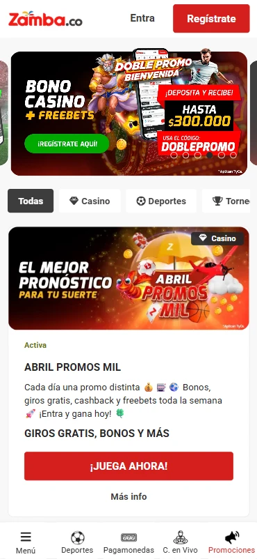 Zamba bono apuestasCasa de apuestas regulada, 100% legal y segura18+. Juega con responsabilidad. Sin diversión no hay juego.