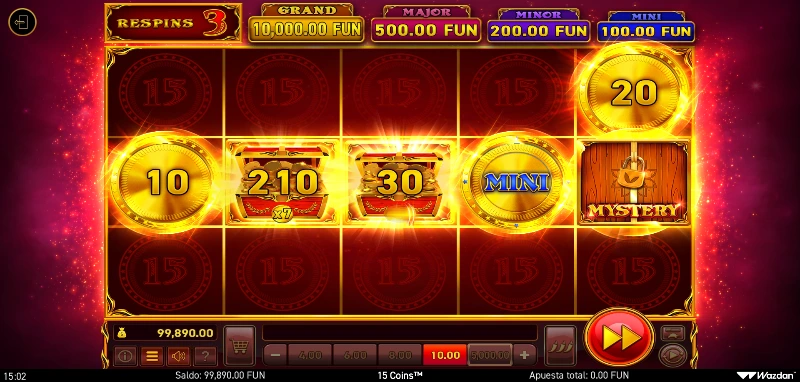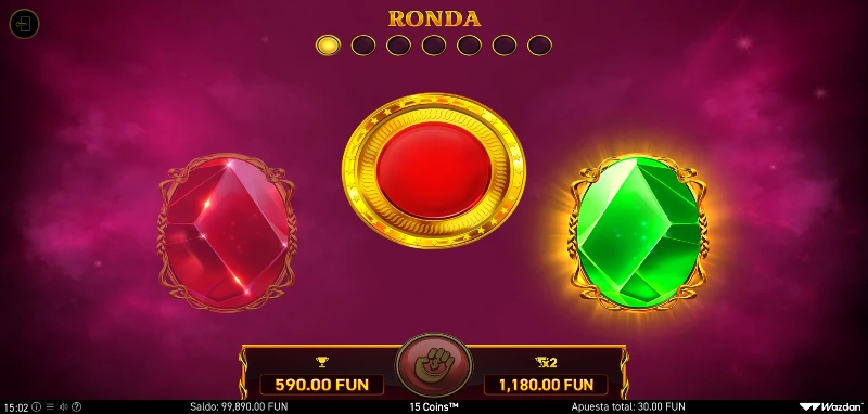 15 Coins 4.1/5 Valoración Sin reseñas Opiniones (0) Wazdan Proveedor 1 Líneas 5,000.00€ Apuesta Máx. 0.40€ Apuesta Mín. x1.000 Premio Máx. 5x3 Rodillos 96.07% RTP Alta Volatilidad Jugar gratis Jugar por dinero real Escrito por Valery LemanovActualizado: 04/10/2025 Pros:Tenemos disponible ahora la opción de apuesta anticipadaUn mayor tablero ofrece más huecos para recoger un mayor n.º de premiosLa volatilidad ajustable y los 5 bonus buy son fantásticos para diferentes tipos de partidas y jugadoresEl estilo visual sigue siendo uno de sus principales atractivos Contras:Los precios del bonus buy en volatilidad extrema vuelven a incrementarse9 Coins Gold Edition ofrece un top win mayor con un tablero más pequeño con el que buscar el Grand Jackpot15 Coins™: ¿El punto medio perfecto de la saga Coins™? La slot 15 Coins™ fue lanzada el 7 de junio de 2023 como una evolución natural por parte de Wazdan tras el éxito de las tragaperras 9 Coins y 12 Coins, estableciendo un nuevo estándar con su cuadrícula 5x3 y un mayor max win x1.000. Con un nuevo tablero de 15 posiciones y 5 símbolos necesarios para activar la fase principal, esta entrega mantiene las mecánicas esenciales que han convertido saga en referente del iGaming, incluyendo el icónico bonus Hold the Jackpot, los símbolos especiales Cash Infinity™ y su volatilidad ajustable Te lo contamos todo en esta reseña donde también encontrarás una demo gratis y sin registro para probar sin riesgo esta nueva propuesta de la familia Coins. Temática, gráficos y sonido El concepto de riqueza y tesoros digitales se mantiene como elemento central, presentando una estética refinada que combina la sobriedad de 12 Coins con toques más ambiciosos. Las animaciones lumínicas continúan siendo el sello distintivo de la saga, creando efectos de brillo y destello que acompañan cada tirada con elegancia visual. La banda sonora conserva ese aire onírico característico de Wazdan, incorporando matices electrónicos más elaborados que refuerzan la sensación de estar ante una experiencia premium. Los efectos sonoros se sincronizan perfectamente con las animaciones, generando esa tensión progresiva que anticipa la llegada del bonus. Cómo jugar 15 Coins™ demo slot Jugamos con un tablero de 5 carretes y 3 filas que forma 15 posiciones únicas, sin líneas de pago tradicionales ya que todos los premios se generan exclusivamente durante el bonus. Veamos el proceso completo para jugar esta slot online: Establece un presupuesto responsable para mantener el control total sobre tus fondos y disfrutar de una experiencia segura. Selecciona tu apuesta por tirada, desde la mínima de 0,40 €/$ hasta la máxima de 5.000 €/$ según tu operador. Ajusta el nivel de volatilidad utilizando los Volatility Levels™, eligiendo entre baja, media o alta según tu estrategia de juego. Consulta la tabla de premios en la interfaz para familiarizarte con los valores de cada símbolo y jackpot disponible. Si tu bankroll lo permite, activa el Chance Level™ (x2, x5 o x10) para aumentar las probabilidades de activar el bonus. Considera usar la compra de bonus para acceder directamente a la fase Hold the Jackpot con diferentes configuraciones iniciales. Configura el modo automático, turbo o establece límites de pérdidas/ganancias desde los controles avanzados. Aprovecha la Unique Gamble Feature para doblar tus premios, adivinando el color correcto hasta el límite establecido por tu casino online. Funciones especiales 15 Coins™ concentra su arsenal de funciones en maximizar la experiencia del bonus, siguiendo la filosofía exitosa establecida en versiones anteriores como 9 Coins 1000 Edition: Cash symbols: monedas doradas con valores entre x1 y x5 la apuesta, estableciendo la base del sistema de premios. Cash Infinity™: monedas rojas especiales con valores de x5 a x10 que permanecen fijas hasta activar el bonus, incrementando significativamente el potencial de ganancia. Jackpot Symbols: sistema escalonado con Mini (x10), Minor (x20) y Major (x50) que se revelan durante la fase de bonus. Mystery Symbols: revelan premios aleatorios al finalizar el bonus, pudiendo transformarse en Cash o Jackpot. Jackpot Mystery: se convierten exclusivamente en uno de los jackpots disponibles (Mini, Minor o Major). Símbolos recolectores: acumulan los valores de todas las monedas visibles y aplican multiplicadores (x1 - x20) adicionales al total recolectado. Hold the Jackpot – Bonus La activación requiere 5 símbolos de bonus en la fila central del tablero base, aumentando la dificultad respecto a versiones anteriores. Una vez desencadenado, el jugador obtiene 3 respins que se renuevan automáticamente con cada nuevo símbolo que aparezca. Todos los símbolos presentes quedan bloqueados al iniciar esta fase especial. El objetivo final es llenar las 15 posiciones disponibles, lo que otorga el codiciado Grand Jackpot de x1.000 la apuesta. 15 Coins: Bonus buy Volatilidad del bonus Precio Figuras iniciales que activan el bonus Baja x75 3 monedas Cash Infinity Media x100 2 monedas Cash Infinity + 1 Mystery Alta x200 3 monedas Cash Infinity + 1 Mystery Extreme x400 3 monedas Cash Infinity + 1 Mystery + 1 Jackpot Mystery Double Extreme x600 3 monedas Cash Infinity + 2 Mystery + 1 Jackpot Mystery 15 Coins™: RTP y volatilidad Retorno al jugador (RTP): 96,07%. Volatilidad: ajustable mediante los Volatility Levels™. Premio máximo: x1.000 la apuesta. Rango de apuestas: 0,20 €/$ – 10.000 €/$ (según operador). Frecuencia de premios: N/D Frecuencia de bonus: N/D Novedades y diferencias frente a ediciones anteriores Cuadrícula expandida: el formato 5x3 con 15 posiciones marca un salto significativo desde las 12 posiciones de la versión anterior. Premio máximo elevado: con x1.000, supera considerablemente el x750 de 12 Coins posicionándose como opción intermedia hacia las ediciones superiores. Cash Infinity ajustados: vuelven a tener valores entre x5 y x10 co