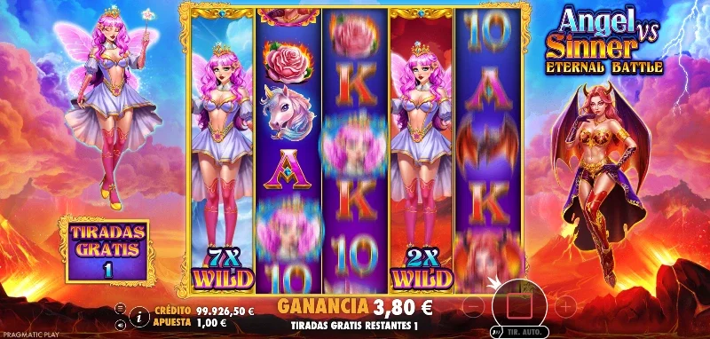Angel vs Sinner Eternal Battle 4.2/5 Valoración Sin reseñas Opiniones (0) Pragmatic Play Proveedor 15 Líneas 250.00€ Apuesta Máx. 0.10€ Apuesta Mín. x15.000 Premio Máx. 5x5 Rodillos 98.04% RTP Alta Volatilidad Jugar gratis Jugar por dinero real Escrito por Valery LemanovActualizado: 11/09/2025 Pros:Estilo visual y sonoro de mayor nivel que en su original de 2023Mecánica de sticky Wilds expansivos presente en el bonus gameUn retorno al jugador del 98,04 % muy por encima de la mayoría de slots comunesDisponible la compra de bonus x75 la apuesta Contras:Al ser un remaster no ha cambiado nada en sus mecánicas, premios ni ficha técnica sin contar el RTPSu versión RTP 98 no está disponible en muchos casinos onlineAngel vs Sinner: Eternal Battle, ¿la versión definitiva de la slot? La tragaperras Angel vs Sinner: Eternal Battle es la nueva entrega de Pragmatic Play, lanzada el 27 de agosto de 2025 como un remastered del título original. En ella se mantiene la esencia del enfrentamiento entre ángeles y demonios, pero con un apartado visual renovado y un retorno de la apuesta mucho mayor. Te lo contamos todo en nuestra reseña completa donde también podrás tener la posibilidad de jugar a la demo Angel vs Sinner: Eternal Battle gratis y sin registro. Temática y ambientación El bien y el mal vuelven a enfrentarse en una batalla eterna donde lo celestial y lo infernal comparten escenario. A un lado, la ángel resplandeciente; al otro, la demonio alada. Ambas volverán a ser los paladines que decidirán qué facción será la que conquiste o si el equilibrio deberá mantenerse En esta eterna batalla entre ángeles y demonios, podremos ser espectadores o tal vez, inclinar la balanza a un lado, la pregunta ahora es ¿de qué lado estarás tú en esta lucha sin fin? Gráficos, animaciones y sonido Con un diseño remasterizado mantenemos los conceptos de los símbolos y el juego, pero con colores mucho más vivos, líneas y detalles mejor definidos y a nuestros personajes más equilibrados y estilizados visualmente. El diseño tipo cómic aumenta a un nivel de efecto web-cómic con animaciones mucho más fluidas y visualmente atractivas. El cambio de fase o las batallas pierden toda la torpeza que podían tener en su versión del 2023. Incluso en el apartado musical tenemos mejoras con un ritmo menos genérico de Pragmatric, aunque no desparece del todo. Y se ha optimizado el volumen de los coros del fondo, haciendo que sean más etéreos y celestiales a costa de haber eliminado los acordes de guitarra eléctrica. Cómo jugar Eternal Battle de Angel vs Sinner demo El sistema de juego se mantiene con una cuadrícula 5x5 con 15 líneas de pago fijas que pagan de izquierda a derecha a partir de 3 figuras iguales o más. El rango de premios tampoco cambia, siendo el mismo que en su versión del 2023; el premio más pequeño es de x0.2 la apuesta y hasta un máximo de x8 por línea completa. En cuanto a los primeros pasos para jugar en una slot, no cambia nada respecto a su original, pero el repaso es la madre del conocimiento, así que: Define tu bankroll antes de jugar y respétalo durante la sesión. Selecciona tu tipo de apuesta desde 0,10 €/ $ y 250 €/ $ por giro. Repasa la tabla de precios y normas del juego para ver que no cambia nada respecto al original en cuanto premios y mecánicas. Podremos seguir utilizando el autoplay y aumentar la velocidad de nuestra animaciones con el turbo. Si tu plan de juego te lo permite, considera el bonus buy pagando x75 tu apuesta. Funciones especiales Seguimos con la misma figura con funciones como estrella del juego, los expanding Wilds seguirán siendo nuestros protagonistas tanto en el juego base como en la fase de bonus. La figura es el corazón azul y rojo, que cuando cae en el tablero se expande si forma de esta manera alguna línea de juego premiada. En ese momento una animación de batalla entre ángel y demonio ocurre, donde cada uno tendrá un multiplicador x2 o hasta x100. Quien venza será quien domine ese carrete y aplicará al premio su multiplicador. Fase de bonificación con spins gratis y Wilds fijos Necesitaremos 3 Scatters que aparecerán en los carretes 1, 3 y 5, permitiendo que accedamos a un bonus de 10 free giros no ampliables en ningún momento. En esta fase seguiremos la misma dinámica del base game, a diferencia de que los Wilds expandibles se volverán también Wilds fijos hasta el final del bonus. Angel vs Sinner: Eternal Battle – RTP y volatilidad Retorno al jugador (RTP): 98,04 % (1,48 % más que en su entrega del 2023). Volatilidad: Alta. Premio máximo: x15.000 la apuesta. Apuesta mínima/máxima: 0,10 €/ $ – 250 €/ $. Sistema de líneas: 15 fijas. Hit frequency: aproximadamente cada 1 de 4 giros (~25 %). Frecuencia de bonus: alrededor de cada 200 giros. Probabilidad de max win: 1 cada 59.523.810 giros. Mi opinión personal Es un remaster de Angel vs Sinner fiel al sentido de la palabra y con unos resultados a nivel visual muy atractivos. El aumento de nivel en los gráficos hace que la partida destaque como una de las video slot de 2025 más potentes del mundo iGaming, además, viene como una de las slots con mayor RTP debido a un 98,04 %, algo que no vemos desde la slot The Catfather con un valor del 98,10 % desde 2016. Para los jugadores que disfrutaron con la demo Angel vs Sinner (2023), creo que este upgrade será una noticia alegre que disfrutarán pronto en los mejores casinos de España. ¿Cuál es tu opinión al respecto? ¿Estás de acuerdo? Cuéntanos tu opinión en la sección de comentarios de más abajo o si buscas jugar a su versión gratuita, pulsa en el botón "Jugar gratis" que encontrarás más arriba en su ficha técnica. ¡Hasta pronto, jugadores! ¿Cuál es el RTP de Angel vs Sinner: Eternal Battle? El RTP es del 98,04 %, más alto que en el título original. ¿Cuál es el premio máximo de Etternal Battle slot? El top win alcanza x15.000 la apuesta. ¿Cuál es la diferencia de E