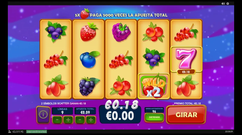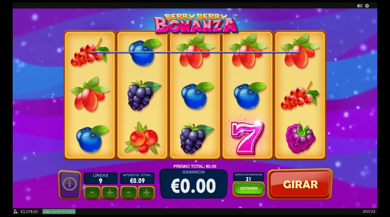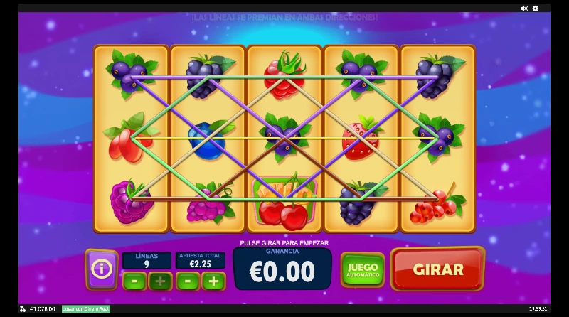 Berry Berry Bonanza 3.5/5 Valoración Sin reseñas Opiniones (0) Playtech Proveedor 9 Líneas 9.00€ Apuesta Máx. 0.01€ Apuesta Mín. x5.000 Premio Máx. 5x3 Rodillos 95.99% RTP Media-Baja Volatilidad Jugar gratis Jugar por dinero real Escrito por Valery LemanovActualizado: 29/05/2023 Pros:Un estilo de juego sencillo y atractivo con pago en ambas direccionesLa figura Wild multiplica x2 los premios pudiendo acumularse con otros comodinesLíneas ajustables para poder jugar desde 0,01 céntimos Contras:No tenemos ninguna función bonusEl Scatter debería premiar sin necesidad de empezar por un tambor lateralBerry Berry Bonanza: ¿Un espíritu clásico en la era digital? La slot Berry Berry Bonanza es un juego de frutas diseñado por Playtech, pensada para jugadores que disfrutan de la jugabilidad clásica, pero con un toque moderno. Lanzada el 11 de abril de 2018, esta slot virtual nos recuerda a las viejas máquinas de frutas que fueron de las primeras temáticas en el sector. Disfruta de esta reseña completa de la tragamonedas y de la demo gratis que tienes para disfrutar de la experiencia sin registro ni depósito. Temática y ambientación ¿Eres fan de las frutas del bosque? ¿Te vuelven locas las bayas? Entonces prepárate para una experiencia que no solo refresca tu saldo, sino que rejuvenece tu ánimo. Una dosis de energía antioxidante donde el paso del tiempo se detiene y cada movimiento trae sabor y color a tu pantalla. ¿Preparado para rejuvenecer? Gráficos, animaciones y sonido Con un diseño colorido y sencillo, tenemos un juego lleno de bayas tan frescas como si acabaran de regarlas. Con animaciones discretas que funcionan al alinear premios se nos indican por líneas cuáles son las premiadas. Junto a ello, una música ambiente suave de estilo pop que no sobresale, pero sí encaja bien con su temática retro con toques modernos. Cómo jugar Berry Berry Bonanza slot Se juega sobre un tablero de 5 carretes por 3 filas, con 9 líneas de pago ajustables. Además, el pago funciona en ambas direcciones, por lo que casi podemos decir que tenemos 18 líneas de juego. El juego premia con combinaciones de 3 o más símbolos iguales en una línea activa, aunque algunas frutas y el símbolo siete premian con 2 figuras, y la fresa incluso paga con 1 sólo símbolo. Los premios van según lo apostado por línea, entre x2 y x5.000. Configura tu apuesta desde 0,09 €/$ hasta un máximo de 9 €/$, ajustando el valor de la moneda por línea. Revisa la tabla de premios para conocer cuánto paga cada figura. Puedes automatizar el juego con la función autoplay, ideal para tiradas prolongadas. Recuerda que el wild duplica el premio en cualquier combinación en la que participe. ¡Pulsa en “girar” y busca combinar tus frutas favoritas! Funciones especiales Aunque no incluye tiradas gratis ni rondas bonus complejas, Berry Berry Bonanza cuenta con el comodín y Scatter que mejora las probabilidades de aumentar tus premios: Wild (cerezas): aparece solo en los carretes centrales (2, 3 y 4). Sustituye a cualquier otro símbolo excepto el scatter y multiplica por x2 cualquier combinación ganadora que ayude a formar. Scatter (símbolo del 7): No importa su posición en los carretes, pero deben empezar por uno de los carretes laterales para considerarse una combinación con premio. Además, como hemos mencionado, el modo de pago both ways multiplica las posibilidades de ganar, convirtiendo esta función en una ventaja táctica importante frente a otras tragamonedas digitales similares. Berry Berry Bonanza: RTP y volatilidad Antes de lanzarte a girar, es útil conocer los datos técnicos de esta slot por internet, especialmente si buscas optimizar tu bankroll y controlar tus expectativas. Return to player (RTP): entre 95,98 % y 95,99 %, dependiendo del operador. Volatilidad: media-baja, ideal para jugadores que prefieren premios frecuentes y menor riesgo. Premio máximo: hasta 5.000x la apuesta por línea con 5 símbolos de fresa. Rango de apuestas: entre 0,09 € y 9 €, accesible para todo tipo de perfiles. Frecuencia de premios: alta, debido a la baja volatilidad y los pagos en ambas direcciones. Mi opinión personal Tras probar Berry Berry Bonanza slot durante múltiples sesiones, mi impresión es clara: es una tragamonedas pensada para jugadores que valoran la estabilidad, la claridad y la sencillez. Su comodín multiplicador es un añadido que mete cierta emoción al verlo aparecer. Pero el plato fuerte son sus combinaciones completas que esconden big wins sobre todo con frutas como las fresas, las moras y las uvas. ¿Lo que echo en falta? Una fase bonus con giros gratuitos u otra capa de mecánica, aunque entiendo que no es el enfoque del juego. ¿Tú qué piensas tras tu experiencia? ¿No la has probado todavía? Entonces disfruta de su demo gratis y cuéntanos después tu opinión en comentarios. Preguntas frecuentes (FAQ) ¿Puedo jugar Berry Berry Bonanza gratis? Sí. Puedes disfrutar de Berry Berry Bonanza en modo demo en esta reseña sin registro ni depósito. ¿Cuál es el RTP de Berry Berry Bonanza? El RTP está entre 95,98 % y 95,99 %, una media estándar para slots clásicas sin bonus. ¿Cuánto se puede ganar en Berry Berry Bonanza? El premio máximo es de x5.000 la apuesta por línea, al conseguir 5 fresas en una línea ganadora. ¿Tiene giros gratis Berry Berry Bonanza? No. Esta slot online no incluye ronda de giros gratuitos, pero tiene un wild multiplicador y un scatter que otorga pagos elevados. ¿En qué plataformas puedo jugar Berry Berry Bonanza? Está disponible en numerosos casinos virtuales que trabajan con Playtech. Consulta nuestra selección de mejores casinos digitales. Casinos para jugar a Berry Berry Bonanza 4.8/5 4.7/5 4.7/5 4.6/5 4.6/5 4.5/5 4.5/5 4.5/5 4.5/5 4.4/5 4.5/5 4.5/5 4.4/5 4.4/5 4.4/5 4.5/5 4.4/5 4.4/5 4.4/5 4.4/5 4.5/5 4.3/5 4.3/5 4.2/5 4.0/5 4.4/5 4.3/5 4.3/5 4.3/5 4.3/5 Bono200€80 tiradas gratis200€200€ + 30 FS200€$5,000 MXN$5,000 MXN$