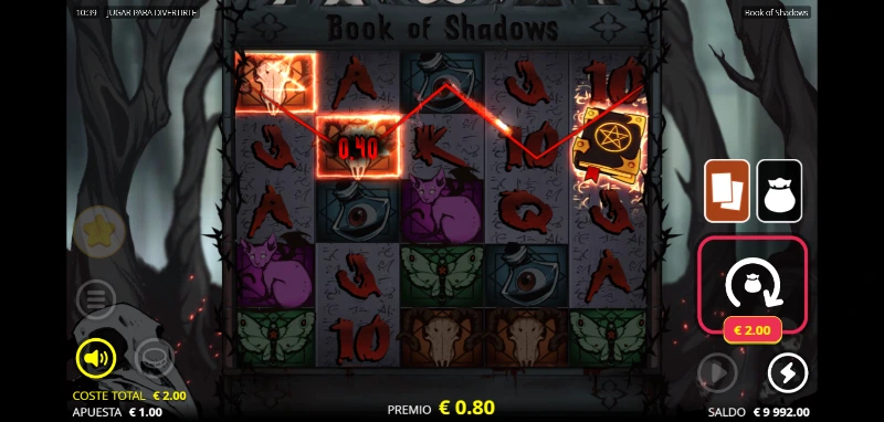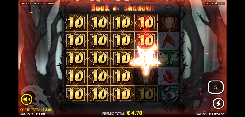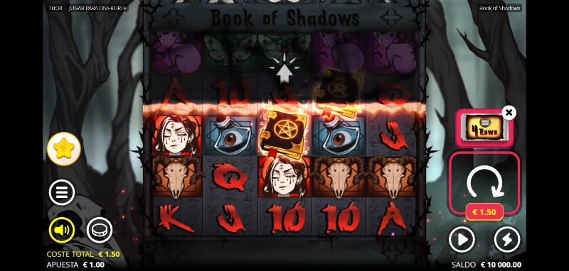 Book of Shadows 4.5/5 Valoración Sin reseñas Opiniones (0) Nolimit City Proveedor 20 Líneas 100.00€ Apuesta Máx. 0.10€ Apuesta Mín. x30.338 Premio Máx. 5x3 Rodillos 96.01% RTP Alta Volatilidad Jugar gratis Jugar por dinero real +1Escrito por Álvaro MirallesActualizado: 19/10/2025 Revisado por Valery Lemanov Analista y jugador de casino online Pros:Dos funciones Gamble para mejorar el premio o lograr el bonusPodemos volver a probar suerte y elegir un nuevo símbolo expansible especial para el bonusUn techo muy alto para poder lograr grandes premios con sus potentes mecánicasSiendo una slot Book of, mejora los puntos clave sin ser otra copia del estilo Contras:La tienda de funciones podría tener más opciones a elegirHay que llevar cuidado con la versión de RTP 90 %Book of Shadows slot: ¿La slot de filas configurables y más de 30.000 de pool prize? La tragaperras Book of Shadows es un juego desarrollado por Nolimit City, lanzado al mercado el 20 de agosto de 2020. Este título transporta a los jugadores a un bosque embrujado donde un grimorio antiguo custodia secretos de magia oscura en un formato único de 5 carretes con filas configurables. Es una tragamonedas de alta volatilidad que destaca por la posibilidad de elegir con cuántas filas jugar (Shadow Rows), y por tanto, también con cuántas líneas de juego activas. Disfruta de esta experiencia gótica intensa que permite ajustar el tablero a tu estilo y siempre con un max win potencial de x30.338 la apuesta. ¿Logrará el grimorio más famoso del 2020 mantener tu interés hoy en día? Averígualo probando la demo Book of Shadows disponible en nuestro artículo del juego. Temática y ambientación Volviendo a casa tocaba pasar por el bosque, se había hecho tarde, pero por las obras a medio terminar del puente, era imposible otro camino sin dar un rodeo mucho más largo. Aquella noche la arboleda seca parecía más viva que nunca, como si entre la niebla que empezaba a formarse ocurriese algo fuera de lo normal. ¡Mira! Un gatito... ¿Cuántos ojos tiene ese gato? Gráficos, animaciones y sonido El estilo visual abraza una estética gótica oscura con un acabado tipo cómic. Las ilustraciones son detallas y con una rica paleta de colores que contrasta con el juego de grises y negros que tenemos en el resto del juego. El fondo es dinámico, con movimientos fluidos y lentos como el movimiento de la niebla o partículas rojas de luz. La banda sonora fusiona terror ambiental con sonidos místicos. Una combinación que incluye diferentes instrumentos de percusión y metal, junto a una cuerda frotada que se complemente perfectamente entre sus notas de silencios. Cómo jugar Book of Shadows demo slot Esta tragaperras online opera con un tablero de 5 carretes donde el jugador decide jugar con 3, 4 o 5 filas visibles mediante la mecánica Shadow Rows. Esto afecta al n.º de líneas de juego con las que jugar, siendo el mínimo 10 líneas fijas o un máximo de 20 líneas de premios flexibles. Independientemente de cuántas líneas o filas activemos, el rango de premios se mantiene siendo el más bajo x0.50 la apuesta y con una línea completa del símbolo de mayor valor (o 5 Scatters), x500 la apuesta. Ahora vamos a proceder al paso a paso de cómo apostar en la tragamonedas: Establece un bankroll fijo y no persigas pérdidas o modifiques el presupuesto por un big win. El rango de apuesta fluctúa entre 0,10 €/$ y 100 €/$, adaptándose a diferentes perfiles. Consulta la tabla de pagos para identificar cuáles son las combinaciones más poderosas. Jugar con 3 o 5 filas afecta a tu tasa de premios, pero también conlleva un precio de x1.5 la apuesta para una fila más (15 líneas) y x2 cuando queremos las 5 filas (20 líneas). Podrás pinchar sobre el tablero para modificarlo o hacerlo desde la tienda. La compra de bonus permite acceder directamente a tiradas gratis y al resto de funciones si tu operador lo tiene habilitado. Configuración Filas activas Líneas de pago Características Modo mínimo 3 filas 10 líneas No tiene coste, pero tiene menor potencial de premios. Modo equilibrado 4 filas 15 líneas Pagas x1.5 la apuesta, aumentando tus probabilidades de premio. Modo máximo 5 filas 20 líneas Cuesta x2 la apuesta, pero juegas con el máximo de combinaciones, logrando el mayor potencial de juego. Funciones especiales Es un juego que se centra en la dinámica clásica que podemos encontrar en otras slots Book of: fase de bonus con símbolo expandible. También contaremos con el doble o nada para conseguir aumentar nuestros premios, e incluso podremos arriesgar el premio por entrar directamente al bonus mediante una ruleta. Por otro lado, los símbolos especiales, Wild y Scatter, estarán reunidos en un mismo símbolo (otro clásico de este tipo de tragamonedas). Cumpliendo así su función de comodín y trigger del bonus. Fase de bonus: Free giros con símbolo expandible El bonus de free spins se activa al conseguir 3 o más libros Scatter en cualquier posición del tablero. El número de Shadow Rows (filas) que tengamos activas harán que varíe el n.º de giros gratis: Entrada al bonus desde N.º de Tiradas gratis N.º de Tiradas según bonus a elegir 3 filas 6 -10 10 spins con tres filas activas 8 spins con cuatro filas activas 6 spins con cinco filas activas 4 filas 8 - 12 12 spins con tres filas activas 10 spins con cuatro filas activas 8 spins con cinco filas activas 5 filas 10 - 14 14 spins con tres filas activas 12 spins con cuatro filas activas 10 spins con cinco filas activas Antes de comenzar el bonus, un RNG (generador de número aleatorios) selecciona un símbolo que funcionará como expandible y premiará mediante Scatter Pays (por dispersión) durante todas las tiradas gratuitas. El juego nos otorgará siempre la posibilidad de cambiar ese símbolo por otro aleatorio y decidir con cuántas filas jugar (afectando al n'º de spins gratis). Cuando el símbolo expandible elegido aparece en cualquier posición 