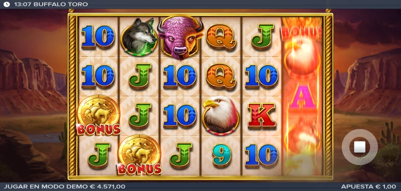 Buffalo Toro 4.4/5 Valoración Sin reseñas Opiniones (0) ELK Studios Proveedor All Ways Líneas 50.00€ Apuesta Máx. 0.20€ Apuesta Mín. x50.000 Premio Máx. 6x4 Rodillos 94.00% RTP Alta Volatilidad Jugar gratis Jugar por dinero real Escrito por Valery LemanovActualizado: 10/12/2025 Pros:Pool prize de x50.000 muy atractiva para los cazadores de grandes premiosEl sistema de All Ways es más permisivo para los big wins con Rampage ReelsMuy buena temática con un fantástico trabajo audiovisualSistema progresivo en el bonus que incentiva premios cada vez mayores Contras:Un retorno del 94%, dentro de la línea ELK, aunque sigue siendo poco aconsejableLos Rampage Reels solo aparecen durante el superbonusBuffalo Toro slot: ¿Puede el Toro defender la manada hasta el x50.000? La tragaperras Buffalo Toro es un juego desarrollado por ELK Studios, lanzado al mercado el 31 de agosto de 2022. Este título transporta al Toro y al Matador al salvaje oeste americano, donde nuestro protagonista adopta el rol de protector de una manada de búfalos frente al pistolero Díaz. Esta slot online de volatilidad alta opera con un tablero 6x4 que ofrece 4.096 formas de ganar y las aprovecha en su totalidad mediante la función Rampage Reels durante du Súper Bonus con un sistema de colección de búfalos dorados para desatar el max win de x50.000, el más alto de la saga. ¿Conseguirá el Toro defender la manada y entregar ese colosal premio? Descúbrelo probando la demo Buffalo Toro disponible en esta reseña completa del juego. Temática y ambientación El Toro ha viajado a las llanuras estadounidenses para conocer y proteger a sus bóvidos parientes. Parece que Díaz también ha decidido acompañar a Toro en su viaje y de lo que no se acuerda es que a pesar de su aventura en Egipto, sospecha que el Matador puede que quiera llevarse algún souvenir poco ético. Ya se encargarán ellos de su dinámica de equipo, ¿y tú a qué has venido aquí? ¿Buscando un tesoro en medio de este desierto? Gráficos, animaciones y sonido El juego presenta un estilo visual tipo oil painting que evoca pinturas del oeste americano del siglo XIX. El fondo exhibe un cañón desértico mientras en el tablero tenemos un abanico de símbolos de animales con un arte realista. Por otro lado, nuestros protagonistas están vestidos para la ocasión, mimetizados con el entorno y manteniendo sus clásicas animaciones durante sus funciones. A esta se añaden también unos avanzados juegos de luces visualmente atractivos en los nuevos Rampage Reels que podemos comprar o ver en el súper bonus. La banda sonora es western, con diferentes instrumentos que buscan un estilo tribal con el que evocar tanto el folklore americano como las culturas nativas. Cómo jugar Buffalo Toro demo slot Esta tragamonedas online opera con 6 carretes x 4 filas ofreciendo 4.096 línea de juego mediante All Ways. Necesitamos 3 o más símbolos idénticos en carretes consecutivos desde la izquierda para generar premios. Los pagos oscilan entre x0,10 y x6 nuestra apuesta base según el símbolo, multiplicables por Wilds multipliers. Debemos tener en cuenta que esta slot de alta volatilidad puede generar áridas rachas, por lo que los siguientes pasos para saber apostar serán necesarios: Establece un bankroll fijo considerando que el RTP es solo del 94%, 2 puntos por debajo del estándar mínimo de mercado. El rango de apuesta va desde 0,20 €/$ hasta 50 €/$ por giro, más ajustado que otros títulos de la saga. Consulta la tabla de pagos para comprender cómo funcionan los búfalos dorados y el sistema de upgrades progresivos. Revisa las normas de juego para confirmar el RTP, que en este título es fijo del 94% sin versiones alternativas. El juego permite autoplay con límites configurables según tu estrategia de juego. Explora la tienda X-iter con 5 opciones entre x10 y x500 si tu presupuesto lo permite. Funciones especiales Esta tragaperras de ELK Studios construye su experiencia alrededor de colección progresiva y múltiples mecánicas superpuestas: Símbolo / Función Descripción Wild estándar Comodín que sustituye símbolos de pago regulares. Una línea completa de Wilds paga como el símbolo de mayor valor. Multiplier Wild Comodín con multiplicador aleatorio x2 o x3. Si varios coinciden en una línea, sus valores se suman antes de aplicarse al premio (ej: x2 + x3 = x5 total). Toro (Walking Wild) Aparece en carrete 5. Actúa como un comodín móvil que se desplaza un carrete a la izquierda con cada respin hasta llegar al carrete 1. Se activa Toro Goes Wild al coincidir con Matadores. Puede aparecer en cualquier tambor. Matador Símbolo bloqueador sin valor de pago. Dos o más activan Matador Respin. Objetivo del Toro durante Toro Goes Wild. Scatter Activa el bonus de juego a partir de 3 símbolos. Super Scatter Solo aparece en carrete 6. Junto con los Scatters normales activa la función súper del bonus. Búfalo dorado Símbolo especial que se recolecta en medidor. Cada 3 recolectados mejoran un símbolo animal transformándolo en búfalo premium. Matador Respin: ¿Dónde está ese Toro? Idéntica mecánica a Book of Toro y su Mummy Respin: Al aparecer 2 o más Matadores, se vuelven sticky y activan respins. Cada Matador que aparezca añade +1 respin y también se fija. Si aparecen varios a la vez, solo se concede un regiro más. Finaliza cuando se agotan los regiros sin nuevos Matadores. Toro Goes Wild: El clásico favorito Cuando el Toro y al menos un Matador coinciden en pantalla empieza la función clásica que conocemos de Wild Toro slot: El Toro siempre prioriza embester primero al Matador que se encuentra en su carrete. Después se mueve en vertical por el mismo carrete y finalmente horizontal para embester contra el Matador más a la izquierda y luego repite la acción con aquellos que haya a la derecha del tablero. Durante sus carreras dejará un rastro de comodines. Pueden aparecer múltiples Toros, pero solo el más antiguo ejecuta la em