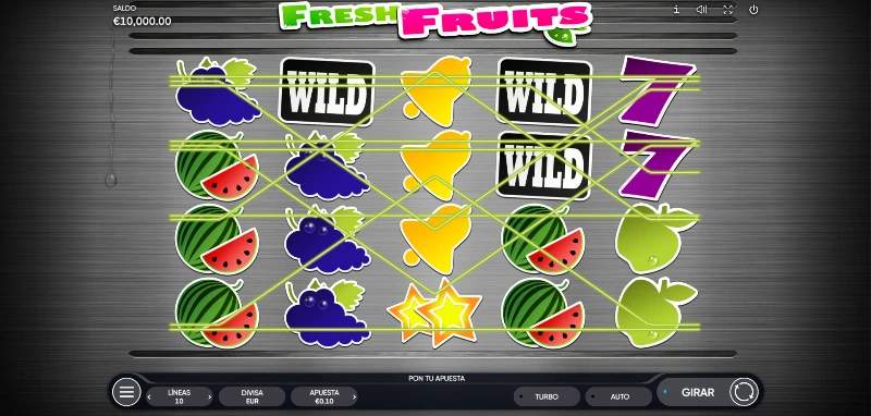 Fresh Fruits 3.5/5 Valoración Sin reseñas Opiniones (0) Endorphina Proveedor 40 Líneas 200.00€ Apuesta Máx. 0.01€ Apuesta Mín. x1.000 Premio Máx. Media Volatilidad Jugar gratis Jugar por dinero real Escrito por Valery LemanovActualizado: 05/09/2025 Pros:Sistema de juego sencillo y directoTenemos un símbolo que paga por dispersión hasta x500 veces la apuestaDisponible el minijuego de doble o nada Contras:Un juego que no sobresale especialmente por nadaPodría haber incorporado un pago en ambos sentidos para mejorar la experiencia de juegoFresh Fruits: ¿Son estos los premios más frescos posibles? La slot Fresh Fruits es una tragaperras online de corte clásico firmada por Endorphina. Apuesta por la inmediatez con un estilo de juego transparente y un buen número de líneas. Si eres fan de la fruta fresca y de simuladores de tragamonedas directos, tu mejor opción está en esta reseña junto a una demo gratuita para jugar sin registro ni depósito. Temática y ambientación No hay mejor fruta que la fruta más fresca. ¿Qué se esconde en este frigorífico lleno de colores y sonidos tan sencillos? Solo abriendo su puerta y rebuscando encontraremos la mejor recompensa, ¿será la vitamina de las chuches de la naturaleza o algo más? Gráficos, animaciones y sonido Tenemos un estilo plano y con formas sencillas, creando un estilo muy adecuado para el sistema de juego que tiene. Juega con el concepto de frutas frescas añadiendo un fondo como si de un frigorífico se tratara por donde podemos ver el caer de las gotas por la condensación. Las animaciones son muy sencillas, jugando con el efecto parpadeante de aquellas líneas que han sido premiadas y la aparición de las mismas para ver su recorrido. La melodía es de género pop muy costumbrista, con un tono alegre y que acompaña cada jugada con un fantástico trabajo sonoro en los efectos de los giros y momentos de grandes premios. Cómo jugar a Fresh Fruits slot La slot online funciona en 5 carretes × 4 filas con 40 líneas modificables que pagan de izquierda a derecha. En valores por símbolo, el rango de premios por línea arranca en x0.2 y llega hasta x100 con 5 Lucky 7. Es importante recalcar que modificar el número de líneas no afecta a los premios normales (pagos por línea según la tabla de pagos), pero sí afecta al Scatter. El símbolo Scatter paga por dispersión como múltiplo de la apuesta total, con un rango entre x2 y x500 de tu total apostado. Con esto claro, repasemos unas bases para jugar mejor: Decide tu presupuesto y cíñete a él para tener un partida controlada. Ajusta la apuesta a tu plan de partida con mínimos desde 0,01 €/$ y máximos habituales hasta 50 €/$, según operador. Revisa la tabla de pagos para identificar símbolos altos/bajos y cómo interviene el wild. Cambia el número de líneas activas de 5 en 5 a través de la interfaz si quieres controlar tu apuesta por línea. Usa autoplay si buscas más ritmo y combina con modo rápido para aumentar la velocidad de los giros. Valora el doble o nada tras cada premio; útil para picos, pero úsalo con moderación dentro de tu gestión de bankroll. Funciones especiales No hay free spins ni ningún bonus especial: todo el potencial está en el juego base, el wild/scatter y el juego de cartas. Comodines apilados: aparecen solo en los carretes del 2 al 4 y pueden ocupar un tambor entero al final de cada giro. Sustituyen a todos los símbolos salvo el Scatter y ayudan a completar combinaciones en las 40 líneas de pago. Scatter: es el símbolo de la estrella o de la fruta carambola, que paga por dispersión en cualquier posición como múltiplo de la apuesta total (x2 a x500); al depender del total apostado, el número de líneas seleccionadas puede influir en su pago final. Risk game (doble o nada) Tras cada premio otorgado se habilita un minijuego de cartas en modalidad doble o nada con el que puedes intentar duplicar tu premio eligiendo una carta más alta que la del crupier. Es posible encadenar la apuesta hasta 10 rondas consecutivas. Si decidimos jugar, se revela la carta del crupier y, a continuación, eliges una de las cuatro cartas ocultas. El reparto lo determina un generador de números aleatorios (RNG), que asigna las cartas de forma totalmente aleatoria. La carta de mayor valor es el Joker/Comodín, por lo que el crupier no puede recibirla; su carta más alta posible es el as. En consecuencia, tus probabilidades de éxito varían según el valor que muestre el crupier en cada ronda. Importante: no existe garantía de que entre las cuatro opciones haya alguna carta que supere a la del crupier. En cada intento pueden darse tres situaciones: Todas las cartas disponibles son más altas. Solo alguna(s) es/son más alta(s). Ninguna supera a la del crupier. Fresh Fruits: RTP y volatilidad Retorno al jugador (RTP): 96,09 %. Volatilidad: media, con flujo de pagos constante. Premio máximo: x1.000 la apuesta. Rango de apuesta: aprox. 0,01 €/$ – 50 €/$ (según operador). Sistema de líneas: 40 líneas modificables en múltiplos de 5. Frecuencia de premios: N/D Mi opinión personal El estilo claro y sencillo de su ambientación está muy bien alineado con la jugabilidad clara. Introduce una figura con pago por scatter y mantenemos el minijuego de cartas, pero llega a faltarle algo más para ser una slot favorita para muchos. Los Wilds apilados añaden momentos de grandes premios, aunque no genera ninguna sinergia al no afectar al scatter pays. A pesar de ello, es una buena tragaperras virtual para hacer apuestas de 1 céntimo por línea y disfrutar de sesiones sin invertir mucho dinero. Además, es perfecta para momentos donde no queremos complicaciones o para jugadores novatos que estén empezando a jugar poco a poco. Preguntas frecuentes (FAQ) ¿Dónde puedo jugar Fresh Fruits? Elige alguno de nuestros mejores casinos online y buscar slots de Endorphina para poder jugar sin riesgo. ¿Cuál es el RTP y volatilidad de Fresh Fruits? El RTP