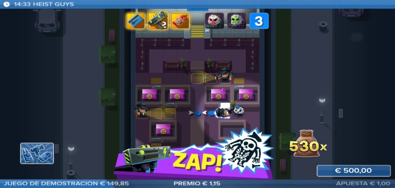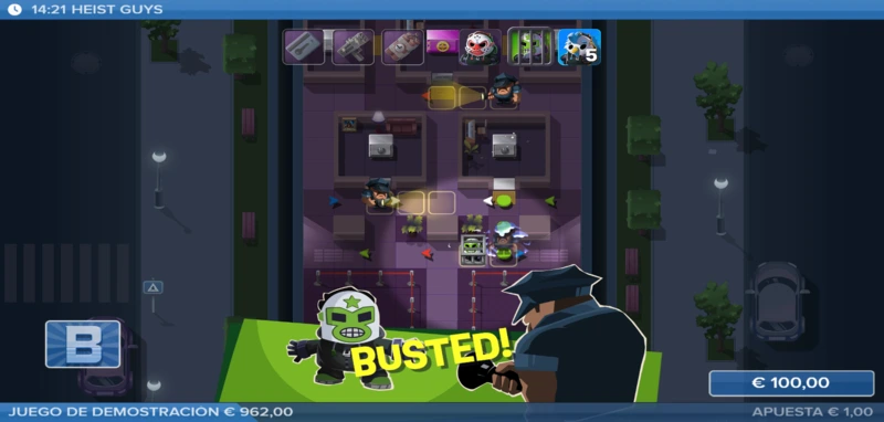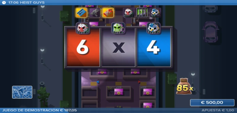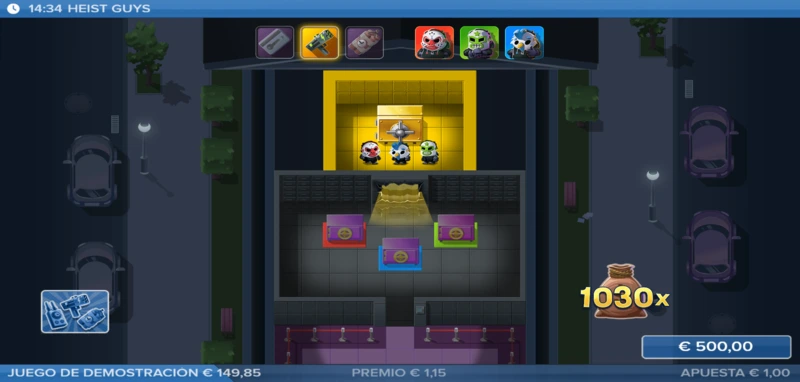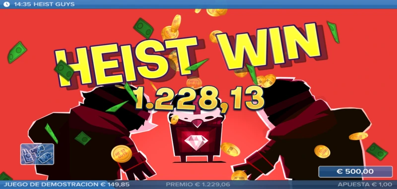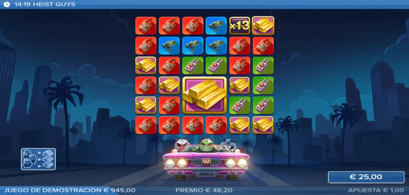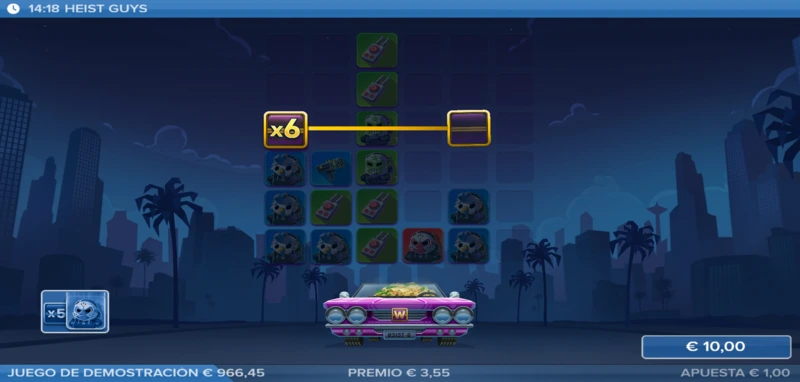 Heist Guys 5/5 Valoración Sin reseñas Opiniones (0) ELK Studios Proveedor Cluster Pays Líneas 100.00€ Apuesta Máx. 0.20€ Apuesta Mín. x10.000 Premio Máx. 6x6 Rodillos 94.00% RTP Media Volatilidad Jugar gratis Jugar por dinero real Escrito por Valery LemanovActualizado: 01/07/2025 Pros:Su ambientación está muy bien trabajada a nivel gráfico y con una banda sonora excelenteEl juego base se centra en un sistema progresivo de premios con cada cascadaUn juego bonus transgresor con premios en efectivo y un divertido storytellingEstá disponible la compra de su bonus y activación de la ante bet Contras:Su ficha técnica no enamora a los jugadores que buscan RTPs altosLa experiencia de juego bonus puede echar para atrás a los jugadores más tradicionalesHeist Guys: ¿Es la slot con la mejor experiencia de juego? Las tragaperras online de este verano entran pisando fuerte, y entre ellas quien viene para quedarse es Heist Guys de ELK Studios. Un lanzamiento del 24 de junio de 2025 que combina un fantástico estilo visual con una banda sonora tan adictiva como su bonus game. Despéjate la tarde porque vas a encontrarte con una de las slots de ELK Studios más modernas hasta la fecha. Te lo contamos todo en la Heist Guys review que te hemos preparado a continuación. Temática y ambientación Ningún grupo de ladrones tiene el mismo ritmo que los thugz. Un trío de ladrones que son capaces de vaciar un banco con un estilo que muchos quisieran. Si alguna noche paseando por la gran ciudad escuchas el motor de un clásico descapotable, con tres enmascarados al volante y su pista de hip-hop a todo volumen mezclándose con las sirenas un coche patrulla persiguiéndolos; acabas de ver a los Chicos del Atraco. Gráficos, animaciones y sonidos Tenemos variedad de diseños dentro del juego donde predomina el estilo cartoon, alternando con un diseño modular en el bonus y arte vectorial en los big wins. Todo siempre con colores vivos y saturados, con diferentes paletas según la fase del juego. Las animaciones son fluidas en todo momento y bien medidas para cada efecto. Sorprende el nivel de bonificación con una fase que se aleja totalmente de las slots online y se acerca una animación de consola de juegos. Además, los efectos de sonido acompañan la experiencia de juego con cada acción que ocurre en pantalla. La banda sonora hip-hop setentero marca el base game perfectamente alineado con una temática rebelde. Tenemos transiciones melódicas bien incorporadas para la temática de robo de bancos que culminan en una melodía marcada por el bajo y el piano eléctrico en la fase bonus. Culmina con una versión de la música al estilo electrónico en los big wins. Cómo jugar Heist Guys slot Jugamos en una cuadrícula de 6×6, sin líneas de pago tradicionales, ya que usa el sistema cluster pays: necesitas al menos 5 símbolos iguales conectados horizontal o verticalmente para ganar. Los premios van desde x0,20 hasta x500 tu apuesta dependiendo de la cantidad y tipo de símbolo que formen una combinación. Una partida típica sigue este flujo que te comentamos a continuación: Ajusta la apuesta entre 0,20 €/$ y 100 €/$. Consulta la tabla de premios para conocer el precio exacto de cada uno de los símbolos y las funciones especiales. Puedes definir hasta 100 tiradas automáticas si quieres con el autoplay. Siempre caerá un Wild en cada tirada y se mueve a una nueva posición tras cada cascada. Si forma parte de una combinación, se transforma en un comodín multiplicador que aumenta su valor de forma progresiva con cada combinación en la que participe. Los símbolos de los ladrones pueden subir de nivel si un comodín ha participado en el cluster con ellos. Las compras opcionales vía X‑iter™ permiten acceder directamente a funciones como la ante bet o la compra de bonus. ¡Adelante con el golpe al banco! Funciones especiales Este simulador de tragaperras virtual reúne diferentes funciones que dinamizan la experiencia de juego. Transformando el juego en algo que se acerca más a un videojuego que a una slot tradicional. Entre las diferentes mecánicas que encontramos en su juego base y recalcamos son: Función Descripción Wild dinámico con multiplicador progresivo Aparece en cada giro con un valor x1 que se mueve con cada combinación. Si participa en un cluster, su valor como multiplicador aumenta en +1. Los símbolos que sean del mismo tipo que una combinación con Wild también desaparecen del tablero (súpercascada). Símbolo kicker (subida de nivel) Cuando el comodín multiplicador se combina con algún cluster de uno de los tres ladrones, se activa una animación y una subida de nivel de su símbolo. El nuevo nivel se representa mediante un icono de tres lingotes, llamándose símbolo kicker. Si los tres ladrones suben a símbolo kicker, se eliminan todos los símbolos excepto los de función y los kicker, activando una nueva cascada en el mismo turno. Símbolos grandes (Big symbols) Símbolos 2×2 o 3×3 que aparecen de forma aleatoria durante el juego. Cluster pays + Función tumble Se premia por agrupar 5 o más símbolos iguales conectados horizontal o verticalmente (cluster pays). Tras una victoria, los símbolos desaparecen y se activan nuevas cascadas (función tumble). Fase bonus: Atraco al banco Conseguir 3 scatters o más, activa la fase bonus, con una animación donde se nos muestra el storytelling de cómo planear dar un golpe en el banco. La fase de bonus se aleja de lo que podemos conocer tradicionalmente, pues mediante una nueva animación se nos muestra cómo el trío llega a las puertas del banco en su descapotable, entra al banco y comienza el robo. El juego consiste en un sistema de rondas en las que el sistema RNG determina cuántas casillas avanzará cada personaje (mínimo 1 y máximo 6). Por el camino, cada ladrón interactuará con los elementos que encuentre y cuando todos los personajes en juegue jueguen su turno, terminará la ronda y comenzará la 