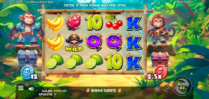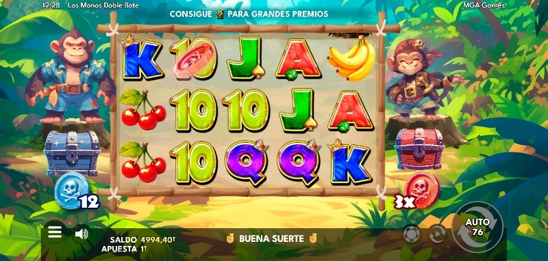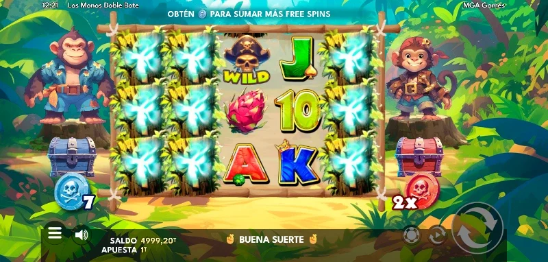 Los Monos Doble Bote 4.2/5 Valoración Sin reseñas Opiniones (0) MGA Proveedor 20 Líneas 20.00€ Apuesta Máx. 0.20€ Apuesta Mín. x2.100 Premio Máx. 5x3 Rodillos 94.17% RTP Media Volatilidad Jugar gratis Jugar por dinero real Escrito por Valery LemanovActualizado: 18/09/2025 Pros:Estilo visual muy agradable, simpático y con personalidadLa mecánica de monedas acumulables para conseguir bonificaciones en el bonus es potenteSímbolos misteriosos que suelen aparecer en carretes completos desvelando el mismo símbolo de pago Contras:Las bonificaciones de giros gratuitos y multiplicador no siempre se usarán en el bonusNo tenemos opción del turbo para el autoplaySlot Los Monos Doble Bote: ¿Qué encontraremos en la isla con Kibo y Tamu? La tragaperras online Los Monos Doble Bote, desarrollada por MGA Games y lanzada al mercado el 22 de agosto de 2025, nos invita a adentrarnos en un paraíso tropical junto a los hermanos Kibo y Tamu en busca de tesoros. Con un carisma simpático y una jugabilidad sencilla, MGA nos presenta a este dúo aventurero para explorar una emocionante isla pirata. Te lo contamos todo en la reseña que te hemos preparado a continuación, pero si eres de los que se lanzan al agua sin probar si está fría o no, también tendrás una demo Los Monos Doble Bote para jugar sin registro y vivir la experiencia en primera persona. Temática y ambientación Pocos conocen esta historia, pues todavía es temprano para que la conozca el mundo. Existe, entre las aguas que separan las islas, un navío tripulado por dos hermanos monos, sus nombres son Kibo y Tamu. Son dos almas que desde muy jóvenes desearon hacer la mar y surcar sus olas con una bandera con dos tibias y una calavera. Uno podría pensar que esta historia ni debería ser contada porque siendo tan jóvenes, será una etapa que pronto acabará, pero apuesto todo mi ron y mis dientes a que serán dos grandes leyendas un día bien pronto. ¿No lo crees? Gráficos, animaciones y sonido Con un dibujo digital 2D tipo ilustración, tenemos un aspecto visual muy simpático y que evoca más la idea de ser un videojuego indie, que el de una slot online de uno de los proveedores de juegos más famosos del mundo. El estilo tiene cierto toque toy-like debido a su fantástico acabado, principalmente en los hermanos Kibo y Tamu. Un hecho que disfrutaremos al lograr big wins o finalizar el bonus y ver a pantalla completa una ilustración con los resultados del bote. Las animaciones son sencillas y agradables, donde cada hermano reacciona de forma fluida al recoger las monedas del color que guarda o cuando conseguimos grandes premios en alguna de las líneas de juego. En Respecto a su banda sonora, tenemos una melodía tropical amena y divertida que invita a cierta aventura con este par de hermanos que se decora con algún sonido ambiental característico de una selva. En cuanto a los momentos de premios importantes, tendremos una música más épica al estilo del cine de piratas. Cómo jugar a Los Monos Doble Bote demo/slot Jugamos en un tablero 5x3 con 20 líneas fijas, donde el objetivo es alinear al menos 3 símbolos iguales de izquierda a derecha. Los valores cambian según las figuras, donde el premio más bajo es de x0.20 y una línea completa puede pagar hasta x10 lo apostado. En cuanto a cómo deberemos afrontar la partida, tanto si sois nuevos como jugadores con experiencia, siempre os recomendamos seguir los siguientes pasos: Decide cuánto dinero puedes usar para jugar, ese será tu bankroll y deberás respetarlo sin perseguir las pérdidas, ni dejarte llevar por las ganancias. Elige cuánto quieras apostar por tirada, donde tu apuesta mínima es de 0,20 €/$ y una máxima de 20 €/$. Consulta la tabla de premios en el menú de reglas para conocer el valor de cada figura y función especial. Activa el autoplay si prefieres tiradas automáticas con la apuesta seleccionada. Las monedas azules aumentan tus tiradas sin coste (max. 40) y las rojas tu multiplicador global (max. 10) durante la fase de bonus. Funciones especiales Es una slot online que pese a su aspecto y temática suave, ofrece diferentes mecánicas con funciones que se concentran en el base game y que pueden incluso afectar positivamente a nuestros premios durante la fase de bonificación. Las figuras con funciones y que son importantes conocer son las que os comentamos a continuación: Figura Función Wild Cual comodín, es capaz de sustituir cualquier símbolo de pago para ayudar a completar combinaciones ganadoras. Mystery Symbols Son los troncos que pueden aparecer en carretes enteros o sueltos. Una vez se quedan en el tablero, todos desvelan el mismo símbolo aleatorio de la tabla de pagos. Son también los encargados de mostrar si esconden alguna moneda roja y/o azul. Monedas Azules Cada vez que recogemos una, aumenta en una unidad la cantidad de giros gratis en nuestra fase de bonus. Solo puede aparecer una por tirada y podremos acumular hasta un máximo de 40 spins gratis. Monedas Rojas Son las encargadas de aumentar el multiplicador base de la fase especial de tiradas sin coste. Cada moneda sube 0.5 el valor del multiplicador hasta un máximo de x10. Solo puede aparecer una por tirada. Fase bonus aleatoria Depende exclusivamente del generador de números aleatorios (RNG) para poder entrar a la fase de bonus que nos otorga un mínimo de 7 tiradas gratuitas. Una vez entramos a la bonificación, el mismo RNG ha decidido si jugaremos con alguna de las bonificaciones de los baúles, pudiendo ser alguna de las siguientes situaciones: Jugamos con ambas bonificaciones, es decir, con el n.º de tiradas acumuladas en el baúl azul y con el multiplicador acumulado del baúl rojo. Solo jugamos con una de las dos bonificaciones. Jugamos la fase bonus sin ninguna bonificación, siendo el n.º de giros gratis 7. Los Monos Doble Bote: RTP y volatilidad Retorno al jugador (RTP): 94,17 %. Volatilidad: media. Premio máximo: hasta ×2.100 tu apuesta. Rango de apu
