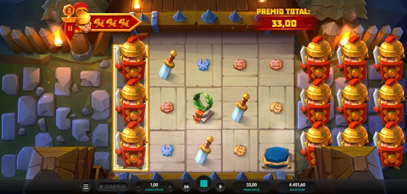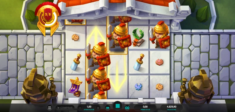 Marching Legions 4.3/5 Valoración Sin reseñas Opiniones (0) Relax Gaming Proveedor All Ways Líneas 100.00€ Apuesta Máx. 0.10€ Apuesta Mín. x10.000 Premio Máx. 5x3 Rodillos 98.12% RTP Alta Volatilidad Jugar gratis Jugar por dinero real Escrito por Valery LemanovActualizado: 08/11/2025 Pros:Tenemos un RTP del 98,12 % siendo uno de los más altos del mercado iGamingVisual low-poly de dibujos animados, de carácter simpático y divertidoLa función de bonus puede prolongarse indefinidamente siempre que tenga una marcha sobre el tablero o esperando a salir Contras:Es una tragaperras pensada para sesiones de larga duración si buscamos el bonusEl estilo de juego es sencillo, pero necesitamos una muy buena gestión del bankroll para aguantarMarching Legions slot: ¿Cuánto podrías ganar con un RTP del 98 %? La tragaperras Marching Legions es un juego desarrollado por Relax Gaming y lanzado al mercado el 2 de julio de 2020. Una entrega que nos transporta a la gloria del Imperio Romano donde las legiones marchan implacables hacia la victoria en un grid 5x4 con 243 formas de ganar. Tenemos una volatilidad alta con una mecánica única de respins mientras las pilas de legionarios se desplazan por el tablero generando premios, todo ello con uno de los RTPs más altos de las slots online, un 98,12 %. ¿Lograrán estas legiones conquistar con este retorno al jugador el top win de x10.000? Descúbrelo en la demo Marching Legions que encontrarás en este artículo sobre la tragamonedas. Temática y ambientación Las trompetas resuenan en el horizonte mientras las legiones romanas se preparan para la batalla definitiva. Hileras perfectas de soldados con sus escudos en alto avanzan implacables por el campo de batalla, conquistando territorio con cada paso sincronizado. El imperio necesita guerreros disciplinados que no se detengan ante nada, que marchen sin cesar hasta que la victoria sea total. ¿Tendrás el temple de un legionario romano para resistir las embestidas y reclamar las riquezas en nombre del Imperio? Gráficos, animaciones y sonido Jugamos a una máquina con gráficos 3D cartoon tipo low-poly con una calidad notable y un estilo amigable a nivel visual. Los legionarios romanos están representados con detalle en sus pilas completas, mostrando armadura, escudos y espadas con acabados metálicos. El tablero presenta una calzada romana que se entremezcla con el fondo, creando una ambientación divertida. A esto se suman las variopintas animaciones que vemos sobre todo cuando logramos líneas premiadas con los legionarios, los cuales prolongan su animación a mayor número de figuras alineadas. En cuanto a su sonido, tenemos una banda épica orquestal con diferentes instrumentos tanto de viento, cuerda frotada y una percusión pesada que recuerdan a las marchas militares. Los efectos incluyen pasos de legiones marchando y choques de escudos entre otros efectos sonoros. Cómo jugar Marching Legions demo slot Esta máquina tragaperras tiene un tablero de 5 carretes x 4 filas y un sistema All Ways con 243 formas de juego. Para conseguir premios necesitamos alinear 3 o más símbolos iguales desde el primer carrete de la izquierda en posiciones adyacentes. Los premios por línea van desde x0.20 hasta x2.5 la apuesta según la combinación que logremos. Sabiendo cómo funciona el sistema de pago, podemos ahora preparar nuestra partida con los siguientes sencillos consejos para apostar en las tragaperras: Establece un bankroll fijo para definir un límite de dinero que vayas a utilizar sin que suponga un peligro y no persigas tus pérdidas si no te ha sonreído la suerte. Elegimos nuestra apuesta dentro del rango de apuesta que va desde 0,10 €/$ hasta 10 €/$ por giro. Consulta la tabla de pagos junto con las reglas del juego para entender cómo funcionan los Marching Respins. Puedes activar el auto play con límites personalizables o el modo turbo para acelerar las tiradas. Si tu presupuesto lo permite y el casino online lo tiene habilitado, podrás comprar el bonus pagando x120 tu apuesta. Funciones especiales En esta slot online romana la mecánica principal consiste en pilas de legionarios que marchan por el tablero facilitando big wins consecutivos, a la vez que van acercándonos al juego de bonificación: Funciones ¿Qué es o qué hace? Marching Respins Cuando aparece una pila completa de legionarios (3 símbolos verticales), se activa esta función. La pila marcha de derecha a izquierda, moviéndose un carrete por respin. Cada movimiento genera un nuevo giro hasta que sale del tablero. Si se forman nuevas pilas completas durante los respins, se unen a la marcha. Función Nudge Si aparecen 2 o más pilas parciales de legionarios en la misma tirada con un borde dorado rodeándolos, el juego puede generar un empujón (nudge) para crear Marching Respins. Esta función no puede ocurrir si ya hay una marcha de legionarios en el tablero. Medidor Cada vez que una pila de legionarios atraviesa la cuadrícula durante los respins (sale por el carrete 1), se suma 1 punto al medidor. Al llegar a 5 pilas recolectadas (330 tropas de legionarios), se activa la fase de bonificación con tiradas gratis. Bocina Aparece solo durante los free spins. Conseguir 3 símbolos de bocina añade una nueva pila de legionarios a la derecha del tablero. Siempre que haya un carrete de legionarios en el tablero, los giros gratuitos continuarán hasta que no se formen nuevas pilas. Bonus de Free Spins: ¿Cuán grande será tu legión comandada? Al completar los 5 niveles del medidor mediante los Marching Respins, se activa la ronda de giros sin coste. No tenemos un número mínimo de tiradas, sino que jugamos en un escenario donde mientras haya carretes de legionarios sobre el tablero y recolectemos bocinas, podremos seguir jugando indefinidamente: Comienzas con una columna de legionarios lista para entrar desde el lado derecho del tablero. Se te otorga automáticamente una bocina de las tres para lograr una nueva 