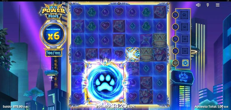 Power Paws 4.4/5 Valoración Sin reseñas Opiniones (0) Push Gaming Proveedor Cluster Pays Líneas 100.00€ Apuesta Máx. 0.10€ Apuesta Mín. x6.500 Premio Máx. 7x7 Rodillos 96.25% RTP Media Volatilidad Jugar gratis Jugar por dinero real Escrito por Valery LemanovActualizado: 20/11/2025 Pros:Sistema progresivo innovador mediante 4 niveles con distintas funcionesDurante el nivel 4 podemos lograr un símbolo colosal 7x7El símbolo colosal misterioso desvela figuras de pago medio, alto, Wilds o incluso premios directos de hasta x1.000Alto nivel audiovisual con fantásticas animaciones y efectos de sonido Contras:El premio máximo es algo bajo incluso para una tragamonedas de volatilidad mediaExiste una versión que debemos evitar a toda costa con un RTP del 85,26 %Los premios directos tienen un techo de x1.000 que solo rozan una sexta parte del max winPower Paws slot: ¿Podrán estos superhéroes felinos escalar los 4 niveles hacia el x6.500? La tragaperras Power Paws es un juego desarrollado por Push Gaming y lanzado al mercado el 23 de julio de 2025. Una propuesta que nos transporta a una ciudad futurista donde los superhéroes antropomorfos custodian la paz y los premios a través de 4 niveles de poder. En este tablero 7x7 con Cluster Pays, disfrutaremos de un sistema de progresión de niveles que irá desbloqueando funciones especiales para conseguir big wins hasta que alcancemos el max win de x6.500. ¿Conseguirás hacerte con las recompensas salvaguardando a los ciudadanos de esta increíble urbe? Descúbrelo en la demo Power Paws que encontrarás en esta reseña del juego. Temática y ambientación: Superhéroes felinos en la ciudad futurista Los superhéroes patrullan la ciudad futurista desde los rascacielos mientras combaten el crimen con su increíble tecnología y habilidades únicas. Los Power Paws es un grupo de élite capaz de aplasatar cualquier mal que se atreva a interponerse en su camino. ¿Te unirás al escuadrón felino para hacer frente a cualquier posible amenaza a cambio de alguna recompensa? Gráficos, animaciones y sonido El dibujo es tipo cómic con vivos colores sobre un tablero flotando frente a un fondo matte painting de la ciudad de corte futurista. Los símbolos nos presentan a los diferentes héroes junto a sus poderosas armas y otras figuras más sencillas con un acabado brillante. Las animaciones destacan cuando se forman clusters con una explosión de partículas que salen disparadas hacia el medidor y logramos avanzar a través de los distintos niveles. De forma más consistente veremos cómo la ciudad está viva al apreciar los jardines flotantes o cuando anochece al conseguir entrar al Power Nudge donde tendremos más acción que nunca. Por último, la música épica ofrece una profunda sinfonía orquestal que permite que destaquen de manera natural los efectos de sonido de corte electrónico junto a una profunda voz en off que indicará cuándo subimos de nivel. Cómo jugar Power Paws demo slot Es una tragamonedas online con una cuadrícula de 7 carretes x 7 filas y un sistema Cluster Pays donde necesitas agrupar al menos 5 símbolos idénticos tocándose horizontal o verticalmente para generar premios por cluster entre x0,10 y x250 tu apuesta base según el símbolo y tamaño del grupo. Es un sistema de progresión de niveles con cascadas en el que deberemos seguir los siguientes pasos básicos para apostar bien: Fijamos un bankroll para controlar la cantidad de dinero que estemos dispuesto a jugar en esta experiencia de volatilidad media con progresión de niveles. Para cada tirada podremos elegir una apuesta diferente entre una mínima de 0,10 €/$ hasta una máxima de 100 €/$, rango generoso para jugadores con presupuesto moderado. Siempre es recomendable revisar la tabla de premios para identificar qué símbolos pagan mejor y entender cómo funciona el sistema de progresión de 4 niveles con sus modificadores desbloqueables. Consulta las normas de juego para verificar el RTP de la versión que vayas a jugar, ya que existen versiones poco recomendables muy por debajo de la estándar 96,25%. Dependiendo del tipo de estrategia para jugar a la tragamonedas que estemos siguiendo, tendremos disponibles diferentes opciones de compra en forma de apuestas anticipadas que detallamos más adelante. Funciones especiales Esta tragaperras de superhéroes felinos construye su experiencia alrededor de la progresión de 4 niveles que desbloquean modificadores acumulativos: Funciones ¿Qué hace? Cascadas Los símbolos ganadores en clusters desaparecen y hacen caer nuevos desde arriba, encadenando cascadas consecutivas. Cada victoria suma progreso al medidor de niveles. Wild El comodín sustituye a todos los símbolos excepto los modificadores especiales. Puede aparecer naturalmente o desbloquearse mediante progresión de niveles. Símbolos Mystery Se transforman en el mismo símbolo aleatorio al resolverse, facilitando la formación de clusters grandes. Medidor de niveles Es un medidor de cuatro niveles fuera del tablero y dividido en 4 partes representando los 4 niveles del juego. Cargador del medidor Símbolo especial que añade 5 puntos al medidor de manera instantánea y luego se transforma en un símbolo de pago. Wilds aleatorios Solo durante el nivel 0 es posible que se active una función aleatoria cuando no tenemos ningún cluster ganador. Esto ubica en diferentes lugares de la cuadrícula entre 5 y 10 figuras Wild. Sistema de Progresión de 4 Niveles: ¡Desbloqueando poderes! Empezamos a jugar desde el nivel 0 estrictamente hablando, con cada 25 símbolos pagados conseguimos avanzar por la mecánica central del juego, la progresión por niveles: Nivel 1: Se desbloquean entre 5 y 10 símbolos Mystery que se transforman en el mismo símbolo aleatorio a lo largo del tablero. Nivel 2: Se añaden 5 - 10 Wilds de forma aleatoria por toda la cuadrícula. Nivel 3: Tras 75 figuras pagadas, obtendremos 2 Mystery Big Symbols que pueden tener tamaños entre 