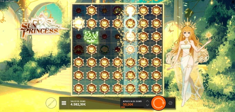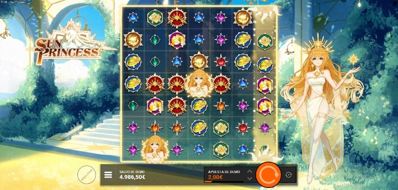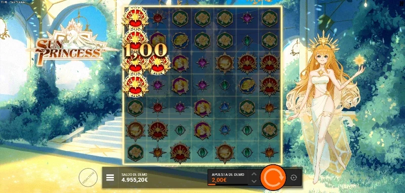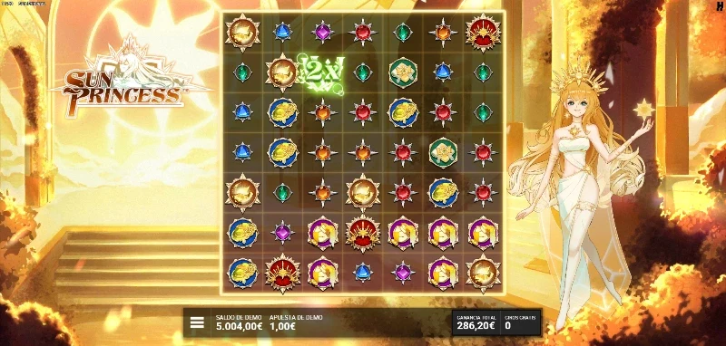 Sun Princess 4.5/5 Valoración Sin reseñas Opiniones (0) Hacksaw Gaming Proveedor Cluster Pays Líneas 100.00€ Apuesta Máx. 0.10€ Apuesta Mín. x10.000 Premio Máx. 7x7 Rodillos 96.29% RTP Media Volatilidad Jugar gratis Jugar por dinero real Escrito por Valery LemanovActualizado: 10/11/2025 Pros:La función del rayo de solar tiene múltiples efectos para aprovecharla en cualquier fase del juegoConseguir el premio por grid completo es realista gracias a las reacciones en cadena de la función rayo solarLos comodines pueden ser objetivo principal del símbolo del Sol para que el resto de figuras sean WildsLa figura Wild obtiene un multiplicador x2 cada vez que es impactado por un rayo solar y además se vuelve sticky en los últimos dos niveles de bonus Contras:La función cascada si desaparecieran los símbolos después de pagarse volvería a la tragaperras una de las mejores en cuanto a mecánicas especiales y experiencias de juegoSun Princess slot: ¿Iluminará Hacksaw Gaming este tablero con magia solar? La tragaperras Sun Princess es un juego desarrollado por Hacksaw Gaming, publicado el 23 de octubre de 2025. Una propuesta que nos transporta al universo de una princesa solar en un entorno celeste con naturaleza luminosa y estética serena. En este tablero 7x7, disfrutaremos de una volatilidad media donde los Sun Ray Frames proyectan rayos que transforman símbolos creando agrupaciones masivas mediante reacciones en cadena. ¿Lograrán estos rayos solares iluminar el camino hacia el max win de x10.000? Pruébate en la demo Sun Princess que encontrarás eb nuestro análisis completo de la slot. Temática y ambientación Los rayos del sol atraviesan las nubes iluminando cada trozo de esta tierra, volviendo a dar vida y calor a cada una de las criaturas que la pueblan. La Princesa Solar es la portadora de la luz y la esperanza canalizando la energía del astro rey para brindar nuevas oportunidades a los valientes que llegan a su templo en busca de su bendición. ¿Podrás recibir parte de la gracia que se le fue dada para lograr tu objetivo? Gráficos, animaciones y sonido Tenemos un estilo visual manga con un amplio abanico de símbolos de gemas con engastes plateados que simulan los rayos de sol. Los colores de los símbolos son vivos y destacan sobre un tablero sencillo semitransparente que nos permite disfrutar de un fondo matte painting que imita una bella pintura que inspira calma y serenidad. Al lado del tablero podemos ver a la Princesa dibujada como un personaje de manga con una variada paleta de amarillos. Tenemos sencillas y luminosas animaciones que apreciamos sobre todo al esperar entrar al bonus, lograr una función especial o al recibir premios por clusters. Los diferentes efectos de sonido enriquecen cada uno de estos efectos que vemos, junto a una suave melodía que cambia de tempo al lograr big wins o tener una racha de premios. Cómo jugar Sun Princess demo slot Esta video slot funciona con una cuadrícula de 7 carretes x 7 filas y un sistema Cluster Pays (pago por agrupaciones). Para conseguir premios necesitamos 5 o más símbolos idénticos conectados horizontal o verticalmente. Los premios por cluster van desde x0.10 hasta x10.000 la apuesta según el símbolo y tamaño del grupo. Una vez conocemos dónde vamos a jugar, es importante repasar cómo preparar nuestra partida para apostar: Es importante que fijemos un bankroll y seamos conscientes que no debemos modificarlo independientemente de cómo proceda la partida. Podemos elegir nuestra apuesta entre una mínima de 0,10 €/$ hasta una máxima de 100 €/$. Revisa la tabla de premios para identificar qué símbolos pagan mejor y entender cómo funciona esta tragamonedas digital. Puedes activar la apuesta anticipada (BonusHunt) pagando x2 la apuesta para triplicar las probabilidades de activar el bonus. Si el operador lo tiene activado y es realista afrontar su precio, tienes dos opciones de bonus para comprar en la tienda de funciones. Funciones especiales Esta tragaperras de princesas se centra en la mecánica de transformación de símbolos mediante rayos en lugar de cascadas: Funciones ¿Qué es o qué hace? Cluster Pays Sistema de pago por agrupación donde necesitas 5 o más símbolos iguales conectados horizontal o verticalmente. Sin cascadas a diferencia de otros títulos con este sistema de líneas. Wild Sustituye a cualquier símbolo regular excepto scatters. Puede recibir multiplicadores x2 cuando los rayos de Sol pasan sobre ellos, aplicándose siempre un nuevo multiplicador x2 con cada nuevo rayo que les afecte sin un techo máximo. Sun Ray Frames Es la función especial prinicipal del juego que transforma los símbolos que ilumina. Solo puede haber uno por tirada y comienza a transformar símbolos tras pagar los clusters que se hayan originado de forma natural. Su efecto comienza marcando un símbolo y según el tipo de marca, generará uno o dos rayos solares que afectarán de a una fila o carrete. Si el haz de luz alcanza un símbolo idéntico como sobre el que había aparecido, creará una reacción en cadena generando nuevos haces de luz perpendiculares. Esta mecánica hace realista poder llenar el grid con un mismo símbolo. Juego bonus con tiradas gratuitas: El Sol brillará más que nunca con la Princesa Al reunir 3 o más símbolos Scatter, se activa una de las tres modalidades de free spins según la cantidad obtenida. Todos los bonus son retrigerables con 2 o 3 scatters durante los giros gratis que otorgan +2 o +4 giros adicionales: Solaris Grove (3 scatters): 10 giros con mayor probabilidad de Sun Ray Frames apareciendo más frecuentemente que en el juego base. Sunfire Palace (4 scatters): 10 spins manteniendo la base de Solaris Grove pero añadiendo que cuando un rayo de luz pasa por un Wild, además de aplicarle x2, lo hace sticky. Golden Eclipse (5 scatters): 10 tiradas garantizando al menos una Sun Ray Frame por giro. Mantiene la mecánica completa de Sunfire Palace con wild sti