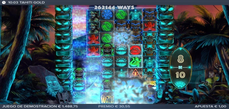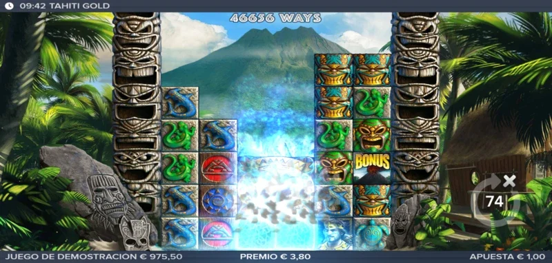 Tahiti Gold 3.9/5 Valoración Sin reseñas Opiniones (0) ELK Studios Proveedor All Ways Líneas 100.00€ Apuesta Máx. 0.20€ Apuesta Mín. x5.000 Premio Máx. 6x8 Rodillos 96.10% RTP Alta Volatilidad Jugar gratis Jugar por dinero real Escrito por Valery LemanovActualizado: 11/07/2025 Pros:Atractiva ambientación progresiva entre el juego base y bonusVarias maneras de jugar con comodines permanentesEl sistema avalancha con filas progresivas es dinámico y divertidoLa función Ojos de Tiki despeja parte de la cuadrícula con una increíble mecánica y animación Contras:Sólo es posible entrar al bonus desde el juego baseLos valores de los premios son bastante bajosTahiti Gold: ¿Un inesperado accidente lleva a Kane a la Polinesia Francesa? Si disfrutas de las aventuras y la exploración, Tahiti Gold es tu nueva slot online para jugar y descubrir nuevos y grandes tesoros. Un juego desarrollado por ELK Studios y lanzado al mercado el 11 de junio de 2019, es la segunda entrega de la serie Gold tras el éxito de Ecuador Gold. El intrépido Kane volverá a ser el protagonista del juego tras haber descubierto y logrado salir con vida del Templo de la Suerte de Ecuador. ¿Qué le espera a nuestro explorador favorito en esta segunda parte? Te lo contamos todo en nuestra reseña completa de la tragamonedas donde también podrás disfrutar de su demo gratis sin registro. Temática y ambientación Tras una exitosa expedición en Ecuador, Kane emprende su regreso a casa sin imaginar que los planes del destino son muy diferentes ahora que ha salido del Templo de la Suerte. El vuelo despega y recorre parte del viaje sin problemas, pero un fallo en el motor pone en peligro la vida de Kane y su piloto cuando el avión comienza a caer en picado. En el horizonte aparece una isla volcánica como la única masa de tierra en medio del vasto océano, aterrizar en ella será la única esperanza de supervivencia. Tras lograr aterrizar, Kane es el único que consigue salir de entre los restos del avión incendiado. Tras lograr salir lo mejor que puede sale corriendo tratando de alejarse del avión, pues las llamas pronto devorarán el combustible en una explosión que tirará a Kane contra el suelo. Ya a salvo, al levantar la mirada, nuestro aventurero se da cuenta de que un grupo de nativos lo recibe hostilmente hasta que uno de ellos grita al resto señalando el tatuaje Ojo de Tiki del hombro de Kane. Una desconocida leyenda para nuestro protagonista lo puede relacionar con un reino antiguo. A partir de ese momento, la isla se volverá el nuevo punto de partida desde donde volver a casa, una isla repleta de oro y de misterios que los locales aseguran proviene de nada menos que el corazón del propio volcán, supuestamente formado de oro puro. ¿Podrá Kane encontrar un camino que seguir para volver a casa? Gráficos, animaciones y sonidos El estilo de dibujo es un diseño digital con profundidad y realismo que podemos apreciar en la espesa vegetación y en otros detalles del escenario escondidos tras las figuras. Junto a ello, podemos notar que las figuras tienen un efecto como si estuvieran talladas en los mismos bloques de piedra, un detalle visualmente muy atractivo. Además, los colores e iluminación del escenario cambia a un azul neón durante la fase de bonificación, añadiendo un progreso temático dentro de la partida. En cuanto al dinamismo, tenemos animaciones impactantes y fluidas, tal y como ocurría en su primera slot de la serie Gold. Las explosiones al conseguir líneas de juego ganadoras son fantásticas y los efectos de sonido que acompañan las caídas y apariciones de bonus optimizan la experiencia. La banda sonora se centra en un ritmo tribal con maracas y otros instrumentos de percusión que mejoran la experiencia de juego, creando una ambientación de la Polinesia Francesa mucho más inmersiva. Cómo jugar Tahiti Gold slot Esta slot cuenta con una cuadrícula de 6 carretes y 4 filas, que puede expandirse hasta 8 filas a medida que los avalanchas activan nuevas posiciones, alcanzando hasta 262.144 formas de ganar. Lo que nos indica que el sistema de líneas es dinámico y concretamente un sistema All Ways. Se lograrán premios mediante combinaciones pagadas al alinear un mínimo de 3 símbolos en carretes consecutivos desde el primer tambor de la izquierda. Donde el valor de los premios por símbolos de pago oscila entre x0.05 y x3.5 tu apuesta base. Ahora que sabemos cómo funcionan los pagos más sencillos, vamos con una guía rápida para empezar a jugar: Ajusta tu apuesta desde 0,20 €/$ hasta 100 €/$ por giro. Consulta la tabla de pagos y reglas en el menú principal (icono de tres líneas) para conocer valores y efectos de los símbolos especiales. Activa el autoplay si quieres configurar tiradas automáticas. La función Avalanche también conocida por cascada o tumble, hará aparecer nuevos símbolos tras una combinación con premio y aumentará a su vez una fila más en el juego. Una vez listo, haz girar los carretes y comienza a ganar premios. Funciones especiales Tal y como podemos imaginar si hemos jugado a Ecuador Gold, aquí también tendremos una diferencia entre el juego base y el bonus game. Donde en este último tendremos todas las funciones que disfrutamos en las tiradas normales, además de sus ventajas características que indicaremos más adelante. Antes, debemos identificar las funciones y los símbolos especiales que nos acompañarán en nuestra partida y acercarán a los big wins: Función o símbolo Descripción Eye of Tiki Cuando caen dos símbolos Eye of Tiki en pantalla, podrán activarse una vez no haya más combinaciones con premio. Todos los símbolos situados en la línea o área entre ellos explotan al finalizar la avalancha, permitiendo que caigan nuevos símbolos y añadiendo una fila adicional en la parte superior. Wild Forge Aparece en los carretes 3 a 6 y se fija en su posición. Cada espacio que se abre debajo durante las avalanchas se llena c