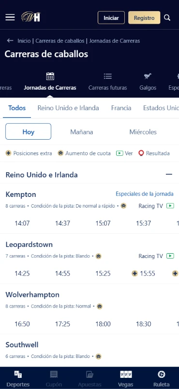 William Hill: Análisis y opiniones 2026 Escrito por Pau SisternasActualizado: 02/03/2026 ApuestasCasino Valoración 4.3/5 Recomendado Opiniones (27) 2.8/5 Ver opiniones Cuotas 4.7 Oferta de apuestas 4.5 Bonos y promociones 4.3 Métodos de pago 4.0 Seguridad y fiabilidad 5.0 Fiabilidad 4.7 Juegos 4.4 Experiencia de juego 4.3 Bonos y promociones 4.3 Métodos de pago 3.8 William Hill bono apuestasPrimera apuesta segura hasta 200€ Cupón BONO200 Apuesta ahoraCódigo promocional BONO200. Aplica a la primera apuesta combinada o Crea #MiApuesta, apuesta mínima 10€ con 4 selecciones o más. Cuota mínima 4.00.William Hill bono casinoHasta 200€ en bonos + 50 giros gratisJuega ahoraDepósito mínimo 20€. Juega las 50 FS para recibir un bono del 100% hasta 100€ por el primer depósito. Optarás a otro bono 100% hasta 100€ con el segundo ingreso. Características apuestas NoStreaming SíCashout SíBetbuilder App móvil SíEsports Galgos/Hípica NoH. Asiáticos NoTotal asiático 6.41%Margen +250Prepartido +50En directo PropioProveedor Características casino +1000Slots +5En vivo 30Ruletas SíJackpots 15Proveedores +10Blackjack NoPoker SíCrash Games NoVideobingo 96,00%RTP App móvil Métodos de pago 5€ Depósito Mín. 5€ Retiro Mín. 1-3 días Pagos Pros:Gran cantidad de mercadosApp muy completaHípica y galgos Contras:Pocas opciones de pagoDiseño web mejorableSin líneas asiáticas Pros:Tragaperras con jackpotMesas premiumBuena oferta de blackjack Contras:Opciones de pago mejorablesCasino en vivo con mucha ruleta automática Nota del experto 4.5 /5 Escrito por Pau SisternasContent Manager "Pide tu apuesta, mejora la cuota que prefieras y aprovecha su excelente variedad de mercados en una bookie de referencia mundial." Nota del experto 4.3 /5 Escrito por Pau SisternasContent Manager "Uno de los casinos online más completos y recomendables en la actualidad, mucho más que el complemento del sportsbook." Detalles de William Hill EmpresaWHG Ceuta, S.A. Fundación1934 DirecciónC/ Millán Astray, número 1, 51001, Ceuta Página web williamhill.es PaísReino Unido Capturas realizadas a fecha 02/03/2026 Medias de pago William Hill Ranking 49 93.59% 1xbet Ranking 1 94.42% MEDIA Media de 53 casas de apuestas 93.33% Por deportes Fútbol91.58%Baloncesto94.65%Tenis94.55% Los usuarios también visitaron Kirolbet 4.5/5 Visitar Sportium 4.5/5 Visitar 888sport 4.5/5 Visitar Opiniones reales sobre William Hill Añadir 2.8/5 Filtros Todas las calificaciones 4 estrellas50.00%2 estrellas25.00%1 estrella25.00% Más recientes Más recientes Más antiguos EEduardo07/02/2025 william hill, una casa de apuestas arraigada con casi un siglo de trayectoria, presume de una oferta completa que atrae a muchos apostadores. a pesar de algunas críticas ahí se mantiene, demostrando su fortaleza en el sector. EEustaquio24/12/2024 DECEPCIONANTE WILLIAM HILL, A PESAR DE SU HISTORIA Y POPULARIDAD, LA OFERTA NO CUMPLE EXPECTATIVAS, DONDE APUESTAN LOS QUE APUESTAN DEBERÍA MEJORAR MUCHO EEzequiel24/12/2024 William Hill, un veterano en el mundo de las apuestas. Oferta completa aunque imperfecta. Es conocida por tener usuarios activos fieles, pero también recibe críticas negativas y a veces con razón. GGerardo07/12/2024 A PESAR DE SU HISTORIA, WILLIAM HILL NO CUMPLE MIS EXPECTATIVAS. SU OFERTA ES COMPLETA, PERO EL SERVICIO AL CLIENTE DEJA MUCHO QUE DESEAR. HE TENIDO EXPERIENCIAS NEGATIVAS Y NO CREO QUE APOSTARÍA DE NUEVO AQUÍ AAre24/03/2023 Experiencia buena...hasta que empiezas a ganar un poquito de dinero...ahí se acaba lo bueno y comienzan los peros. Dificultad retirar, problemas para cerrar apuestas. No lo vuelvo a usar HHouse19/03/2023 Es una poca vergüenza lo que hacen te mandan un bono y cuando le das a obtener bono siempre tienen problemas con esa oferta es una detrás de otra , desde que han cambiado su política de empresa es una estafa solo quieren que ingreses dinero sin parar a cambio de nada PPablo31/10/2022 Para mi es una gran decepción, para ingresar fue muy fácil, para retirar no, El software no funcionaba en mi PC ni en el móvil. Para jugar al poker tuve que ingresar otra vez y la interfaz es muy mala. Pero lo peor fue al intentar retirar, me decía que el cvv de mi tarjeta era incorrecto pero no tenía donde escribirlo. Me sentí verdaderamente estafado. GGoyo24/07/2020 No me deja acceder a la página willianhill.. Error 403 Casasdeapuestas.com24/07/2020 ¡Hola Goyo! El enlace al casino de William Hill está funcionando correctamente: https://www.casasdeapuestas.com/visitar/williamhill/casino NNuria27/04/2019 Llevo un tiempo usando William Hill y es una de las mejores casas de apuestas que he probado. Es muy fácil de usar, hay una gran variedad de eventos y buena atención al cliente. JJuanFran22/03/2019 William Hill me ha ganado por sus cuotas entre las mejores del mercado, su sencillez de manejo e intuitiva web en móvil, seriedad y servicio de atención al cliente. Su promoción del "Cuoton" es un gancho muy interesante para mejorar cuotas de por sí ya atractivas Dispone de gran número de eventos en directo con su WHTV y eso lo valoro enormemente por jugar mucho apuestas en vivo. Quizás no goce de la publicidad de otras, pero no es esto lo que yo valoro de una casa de apuestas, si no cuotas, manejo, formalidad y atención, y en esto yo diría que es difícil de superar Para mí, sin duda, la mejor junto con Bet365 PPablo14/03/2019 He usado varias y esta es la que más me gusta. Sencilla y fácil de usar. Yo la considero la mejor. Tengo amigos que usan 888Sport pero yo estoy más cómodo con esta. AAlvaro Torres25/11/2018 Llevo un tiempo probando William Hill y el resultado es gratificante. Buena atención y enorme variedad de eventos, facil de manejar. La recomiendo totalmente a todos los que estén buscando un sitio nuevo donde apostar. YYolanda Lopez07/07/2018 Una de las casa imprescindibles en mi opinión, tanto por la variedad de mercados que abarca como por el prestigio y solvenci